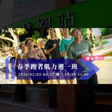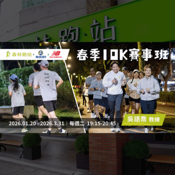 2026春季.初心跑步班|跑步訓練課程 2026春季.初心跑步班|跑步訓練課程 【跑步養成計畫】你是為了什麼想開始運動的呢? 無論是想要改善... 查看更多 跑者肌力週一春季班|跑步訓練課程 跑者肌力週一春季班|跑步訓練課程 跑步不是只有跑,想要跑得快又穩又長久?該練的肌力絕對不能少!... 查看更多 森跑 x 有意思 x NB 春季10K賽事班 森跑 x 有意思 x NB 春季10K賽事班 由森跑初心班 x 有意思跑步訓練班 x NBRC 吳語喬教練... 查看更多 跑者必備的動作控制力講座 跑者必備的動作控制力講座 把力量用對地方很重要,背後暗藏的小細節不可少❗ 「動作控制... 查看更多 2026半馬突破班|跑步訓練課程 2026半馬突破班|跑步訓練課程 ꚰ已額滿 【春季賽事倒數中,冬季是提升速度的最好時機】 想... 查看更多 2025初心跑步週一班|跑步課程 2025初心跑步週一班|跑步課程 你,是為了什麼想開始運動的呢? 無論是想要改善體態、運動養成... 查看更多 2026半馬入門春季班∣跑步訓練課程 2026半馬入門春季班∣跑步訓練課程 ꚰ已額滿 🏃♂️適合想要開始挑戰半馬的你,安全完賽不是夢... 查看更多 全馬進擊週五班|跑步訓練課程 全馬進擊週五班|跑步訓練課程 【2026年新希望——挑戰完成初全馬!】 2026年你是否想... 查看更多 全馬進擊週二班|跑步訓練課程 全馬進擊週二班|跑步訓練課程 【春季賽事倒數計時,現在就是全力「進擊」的時刻!】 跨過冬天... 查看更多 假日晨跑冬季班|跑步訓練課程 假日晨跑冬季班|跑步訓練課程 ꚰ已額滿 【美好週末,從週六晨跑開始】 冬季氣溫下降,正是... 查看更多 森林跑站 輕入門肌力課程 森林跑站 輕入門肌力課程 森林跑站 輕入門肌力課程 樂活動起來,5週活力提升 / 穩... 查看更多 2025臺北馬賽前補給講座 2025臺北馬賽前補給講座 臺北馬拉松進入倒數階段,距離賽事只剩最後一哩路了 想突破PB... 查看更多