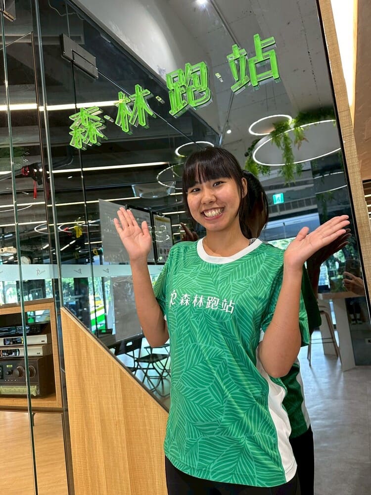 在『初心跑者肌力週一班』陪伴大家的沈泥助教,她笑說自己是擔任炒熱氣氛的角色,協助大家做動作調整、也帶領大夥一塊熱身與收操。