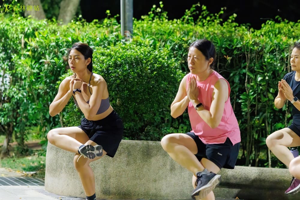 沈泥助教說明:「班上多數學員都是剛開始運動的新手,所以肌力訓練多以徒手為主,比如深蹲、階梯練習、單腳平衡等。這些動作看似簡單,但對久坐的上班族來說,其實很有挑戰。」她提到,之前的階梯課程就讓學員們紛紛喊累、很有收穫,從動作穩定度就看得出,每個人的日常活動狀況。
